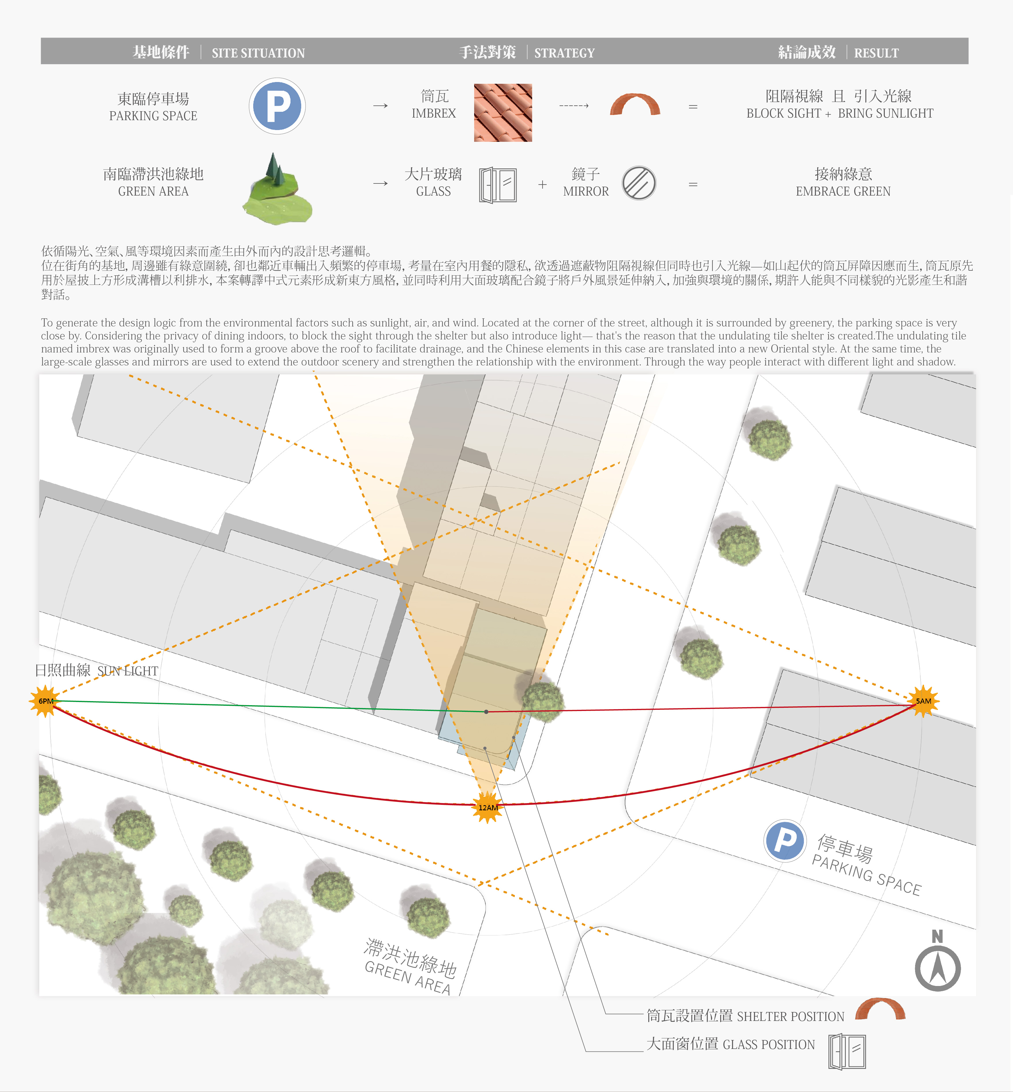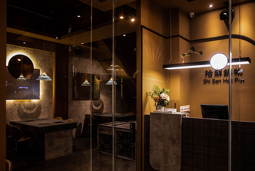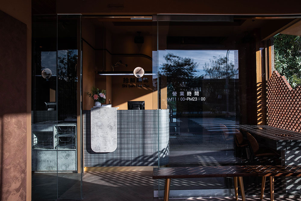 本案為座落鬧區轉角的鍋物店,提取古典元素,化用現代手法,以新舊融合的姿態煥發光彩。結合在地瓦窯品牌,將瓦之意象寓意為「鍋物送暖」,樓棟彷彿化為一口窯爐,緩緩吹送暾煦和風。新鮮食材佐以自然材質,呼應「拾得新鮮」的美好意念,轉化既定中的餐食氛圍。