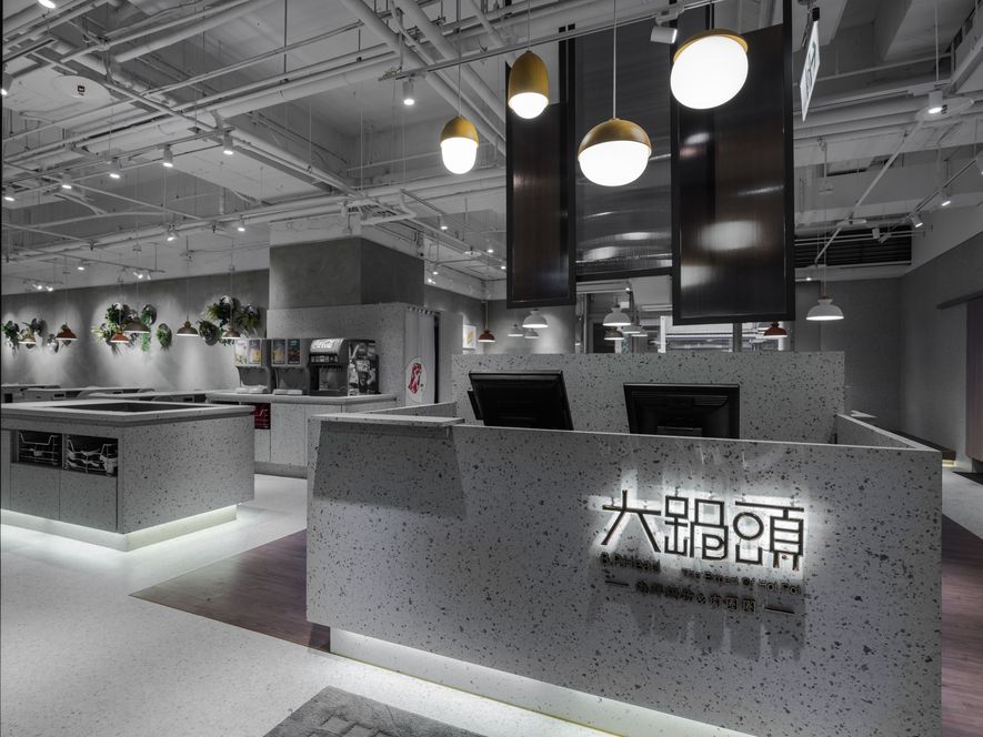 位在國境之南的驛站商場,一間全室為水泥色的鍋物店——「大鍋頭」,吸引 著過路人的目光。而這樣的獨特視覺,來自素有「空間設計顧問」美名的 弄木 人文空間 莊舒云 設計總監、劉文婷 總經理 之手;憑藉著精準的空間定位與 品牌客製,利用純淨色調烘托鮮色欲滴的肉食,區分其他五顏六色的餐飲空間,使深耕熱情南部的連鎖鍋物店,給予往來旅客一處身心舒緩的停留之地。